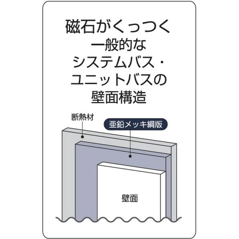 簡単取り付け、マグネットだから壁に貼り付けるだけ。浴室の取り付け面を傷つけません。ボトルなどの収納に便利です。