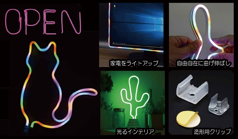 曲げて伸ばして 好きな形で取付け可能なLEDネオンチューブライト