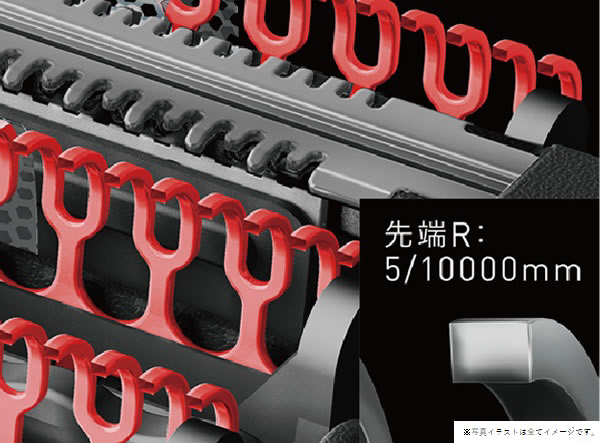 最も負荷のかかる前後の刃に、チタンをコーティング。末コーティング刃と比較して凸凹が少なく、刃の表面がなめらかに。