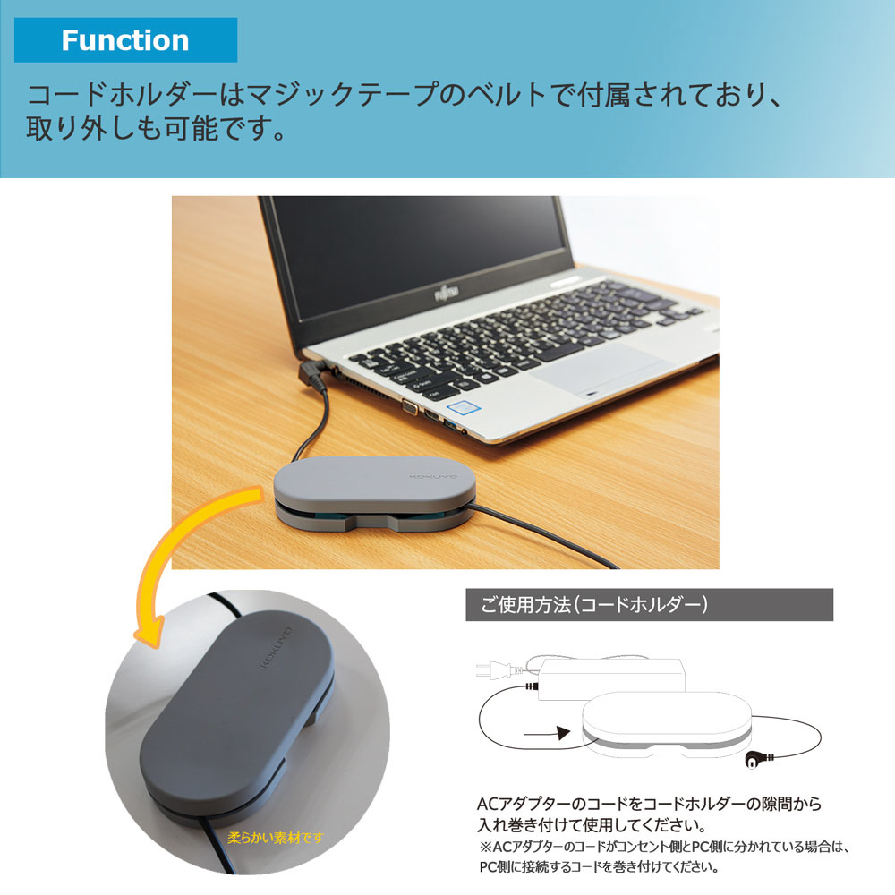 ■付属のコードホルダーはPCバッグから取り外して使用する事ができます。