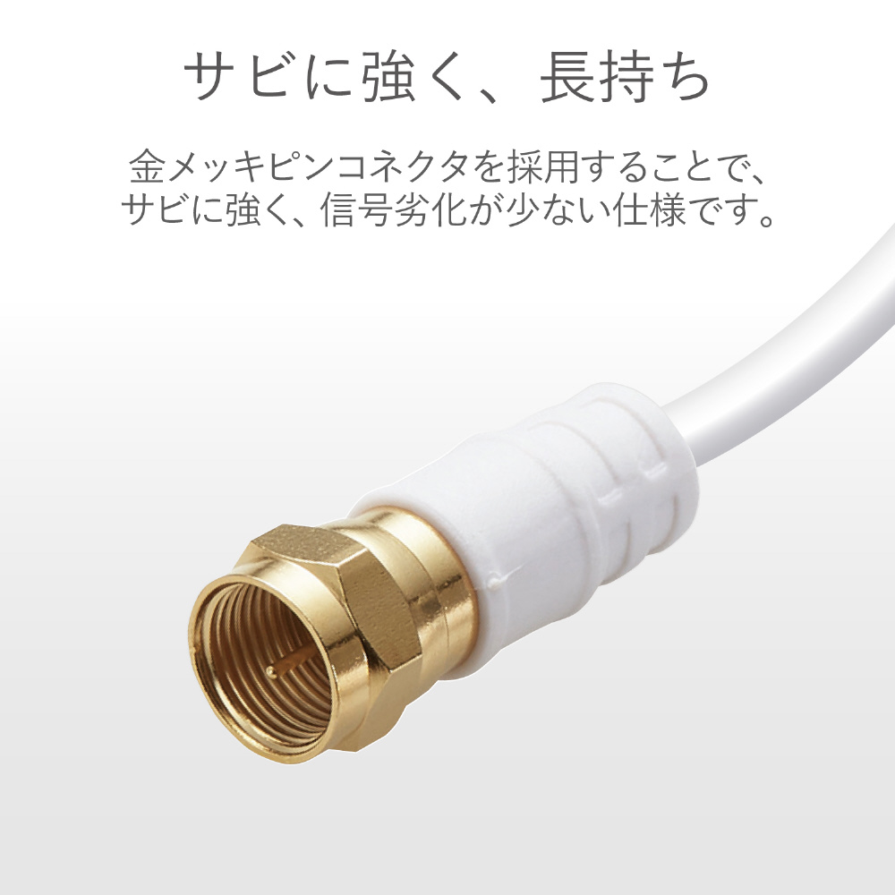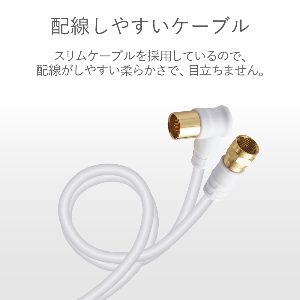 新4K・8K(3224MHz)放送に対応した製品です。地デジ・BS・CSのデジタル放送やケーブルテレビでも使用できます。壁面のテレビ端子とテレビ、レコーダー、テレビチューナー付パソコンなどの接続に最適な接続ケーブルです(3m)。