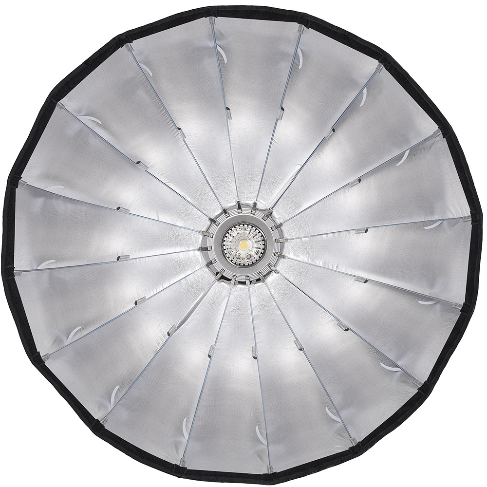 直径120cmのQR-P120、90cmのQR-P90、70cmのQR-P70の3サイズをラインナップ。マウントには汎用性の高いボーエンスを採用。通常のボーエンスマウントスピードリングの直径が18cmなのに対し、このQRシリーズは15cmとコンパクト、持ち運びや収納が容易になっています。内面には高反射のシルバーインテリアパネルを採用、取り外し可能なインナー、フロントディフューザーでソフトな光を作り出します。また別売でグリッドも用意しています。