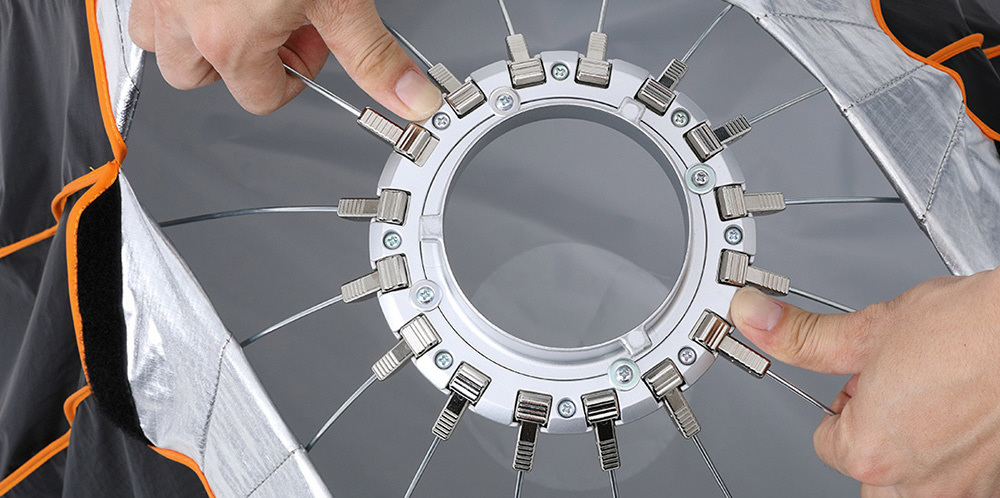 スピーディなセットアップとリリースに最適なリストアップオープン方式を採用したパラボリックソフトボックスです。