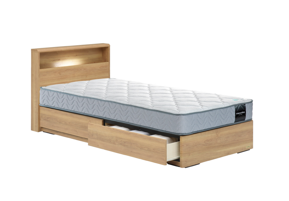 【フレーム&マットレス】収納付き キャビネットヘッドボード PR-70-06C[収納付き/スノコ床板](セミダブルサイズ/ナチュラル) + TW-100アルファセット フランスベッド [セミダブルサイズ]