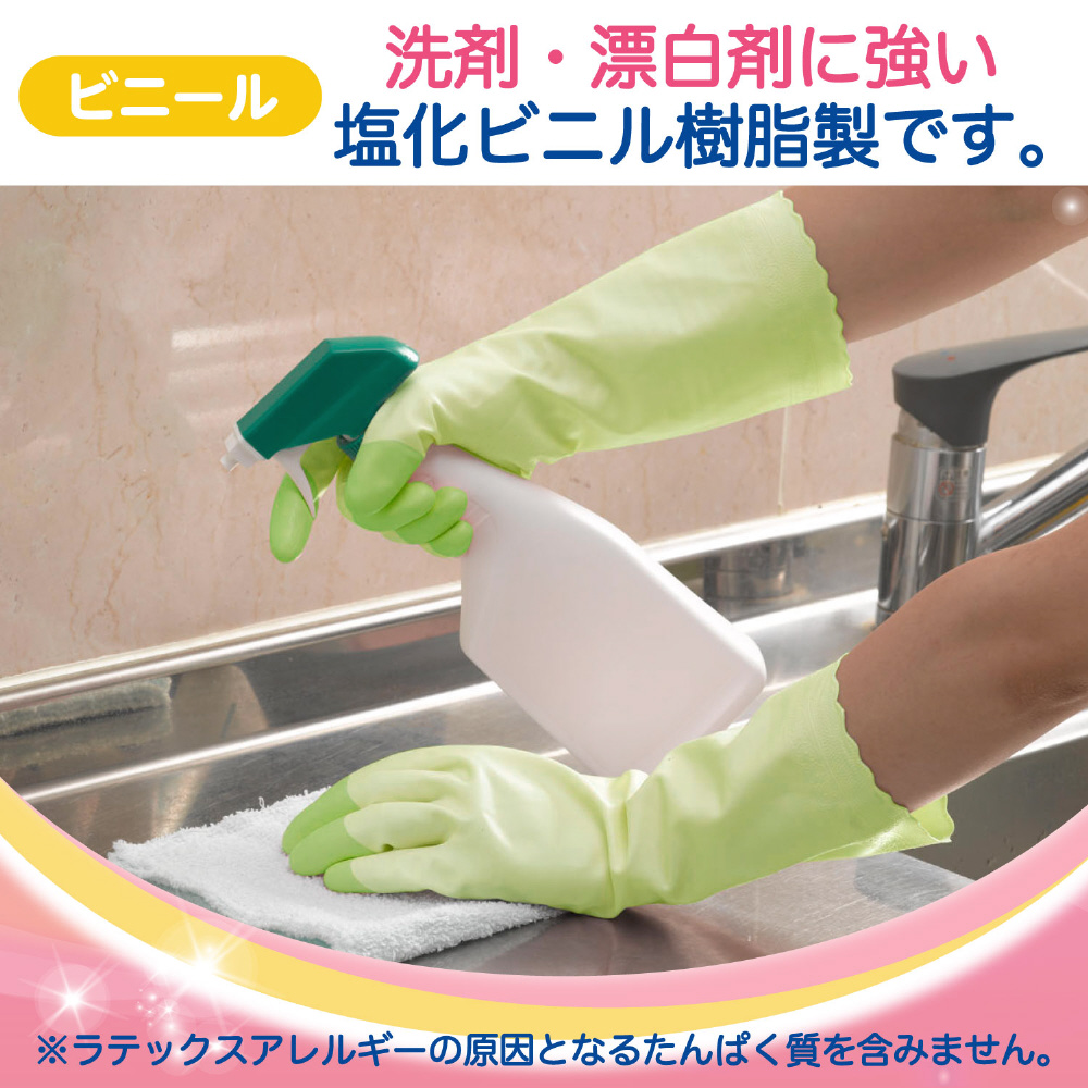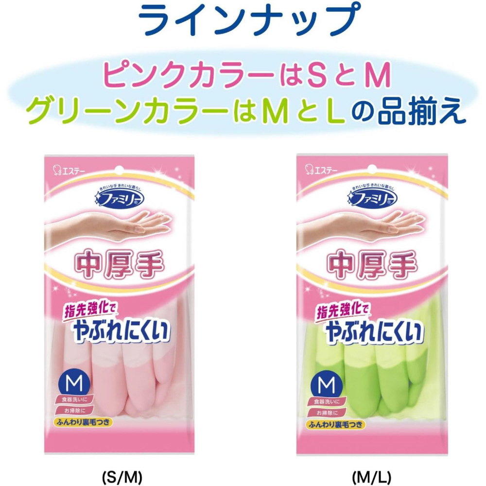 ファミリー ビニール手袋 中厚手 指先強化 Mサイズ グリーン ST71212