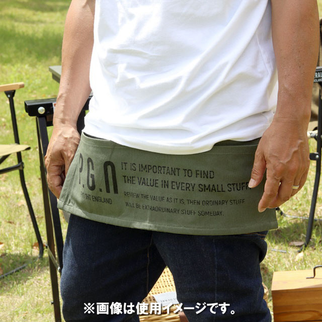 ビンテージの企業広告エプロンをモチーフにした前掛け型のワークエプロン。