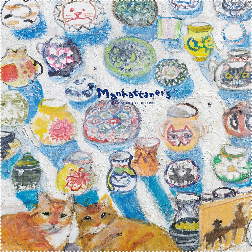 「マンハッタナーズ」シリーズ。 ネコが描かれた超極細繊維を使ったメガネ拭きです。