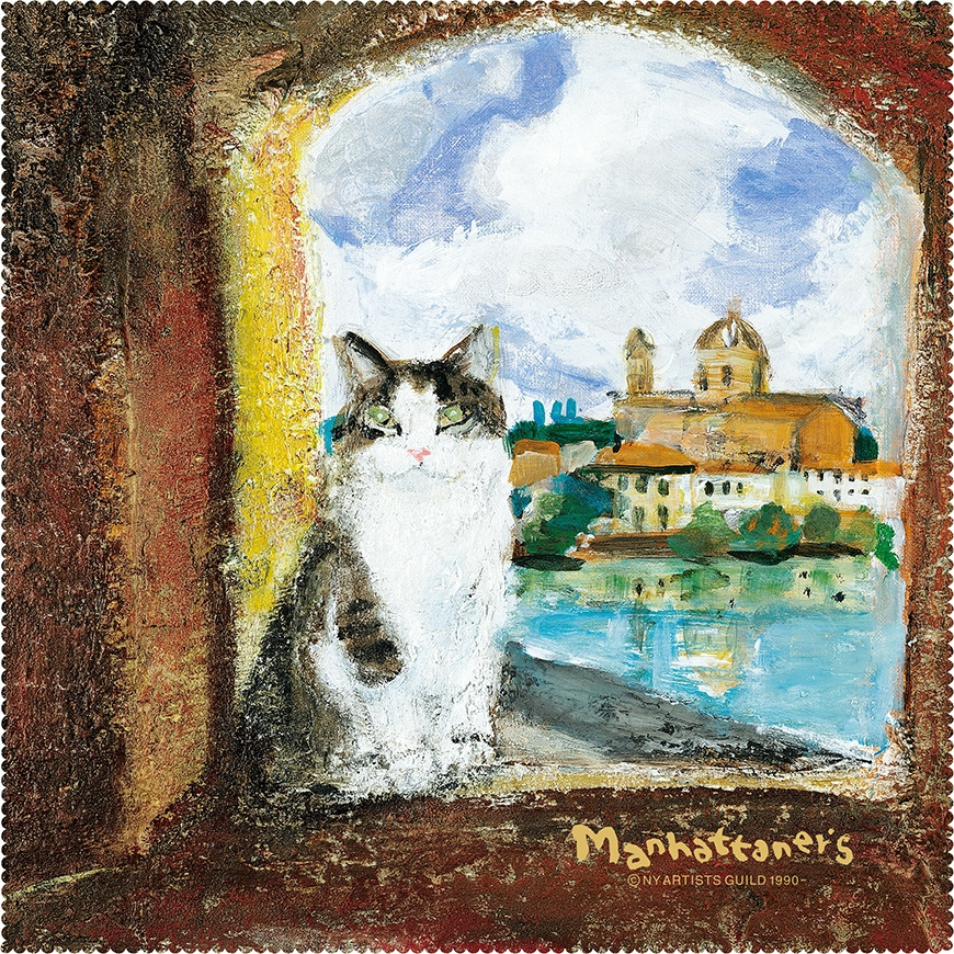 「マンハッタナーズ」シリーズ。 ネコが描かれた超極細繊維を使ったメガネ拭きです。