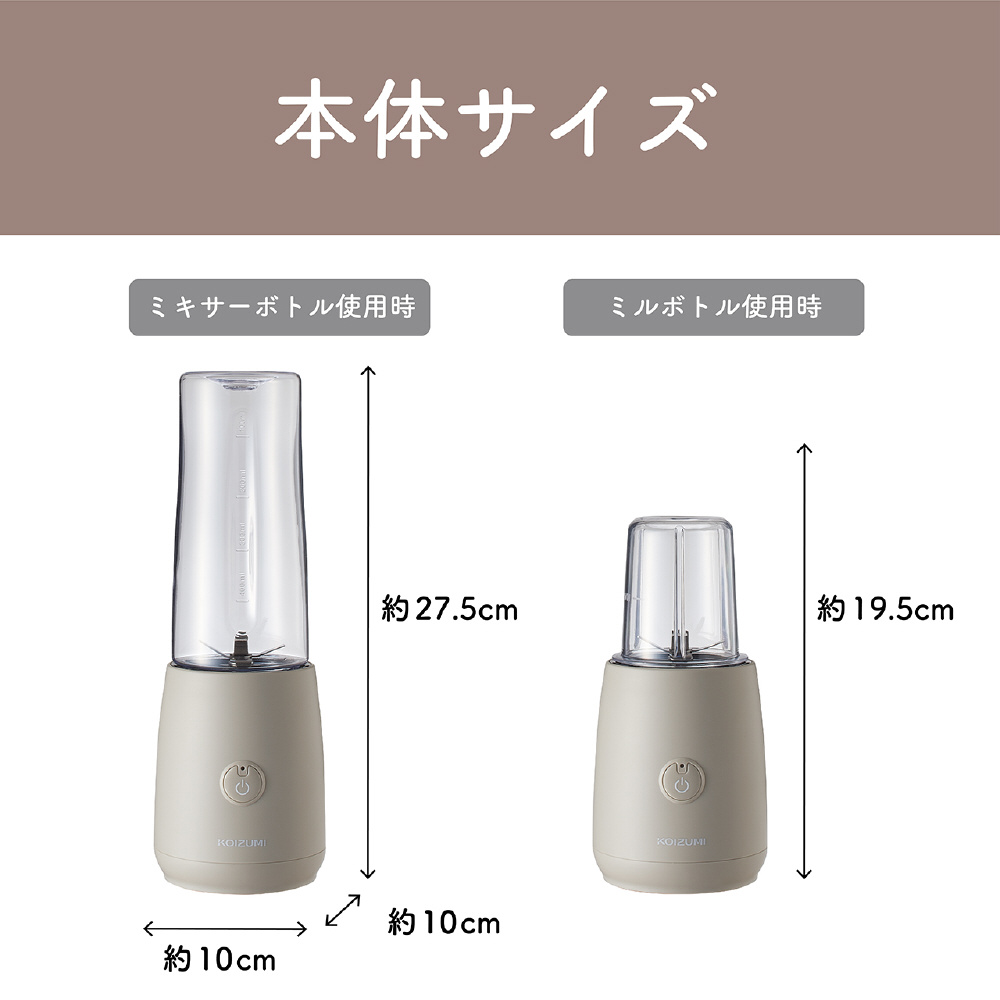 USB充電式で場所を選ばず使用でき、400mlミキサーボトルと85mlミルボトル付き。