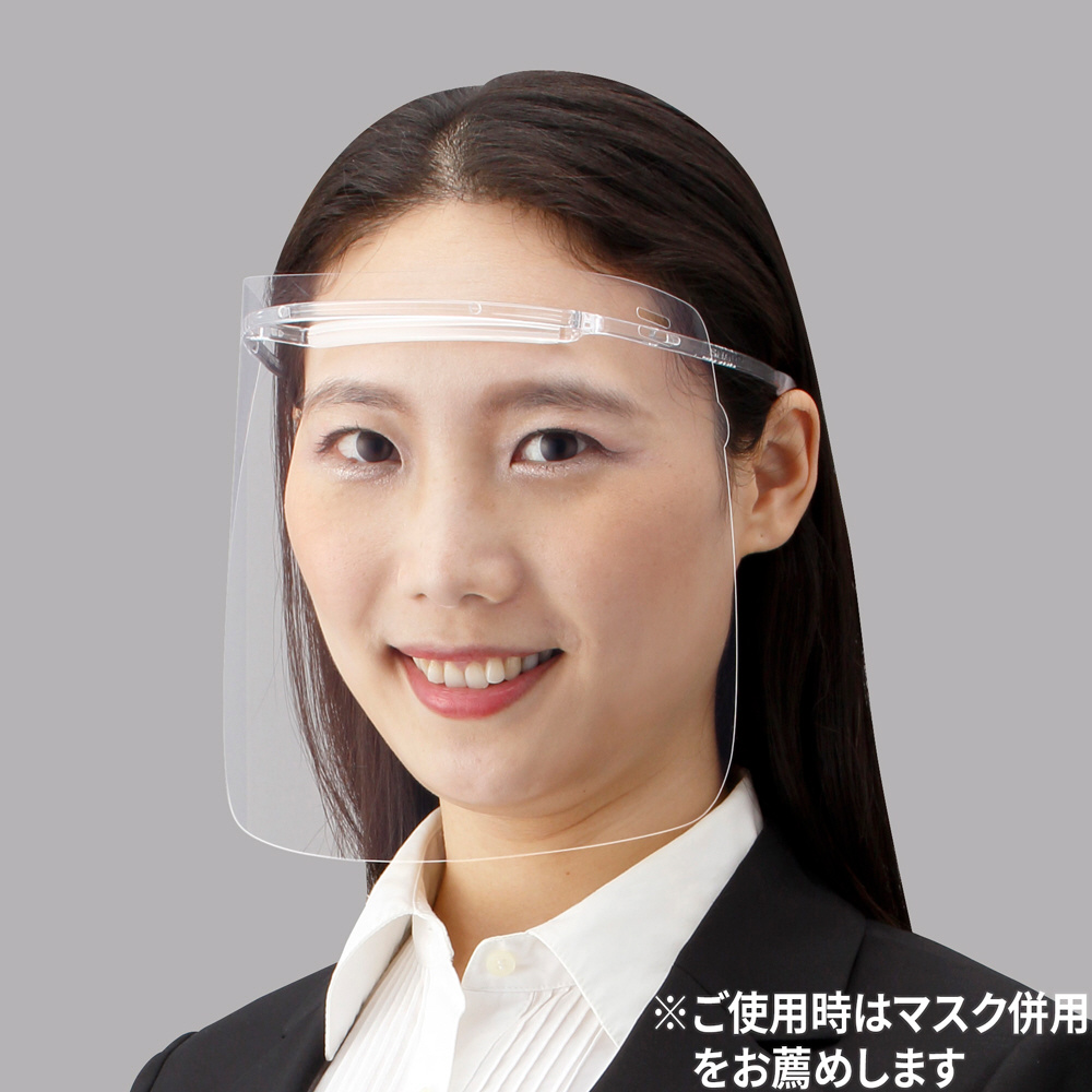 また、表面基材にはポリカーボネートを使用。高透過率で着用者の表情もクリアに見えるので、企業の受付や接客業など、人と対面する機会の多い幅広い業務にも適しています。