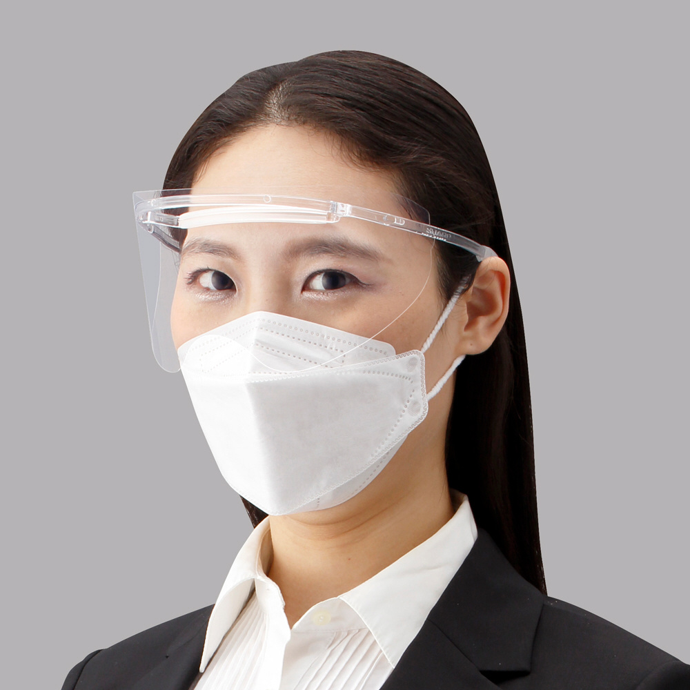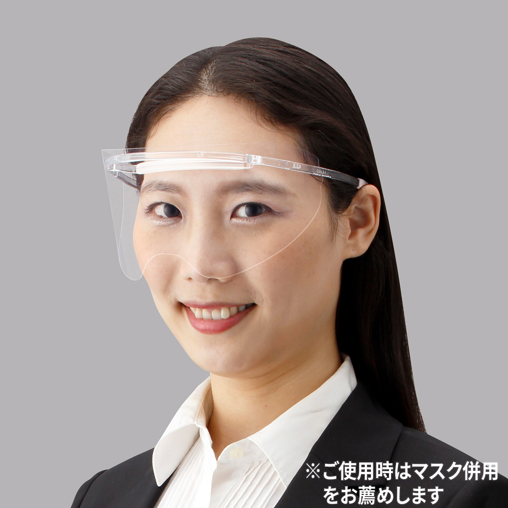 また、表面基材にはポリカーボネートを使用。高透過率で着用者の表情もクリアに見えるので、企業の受付や接客業など、人と対面する機会の多い幅広い業務にも適しています。