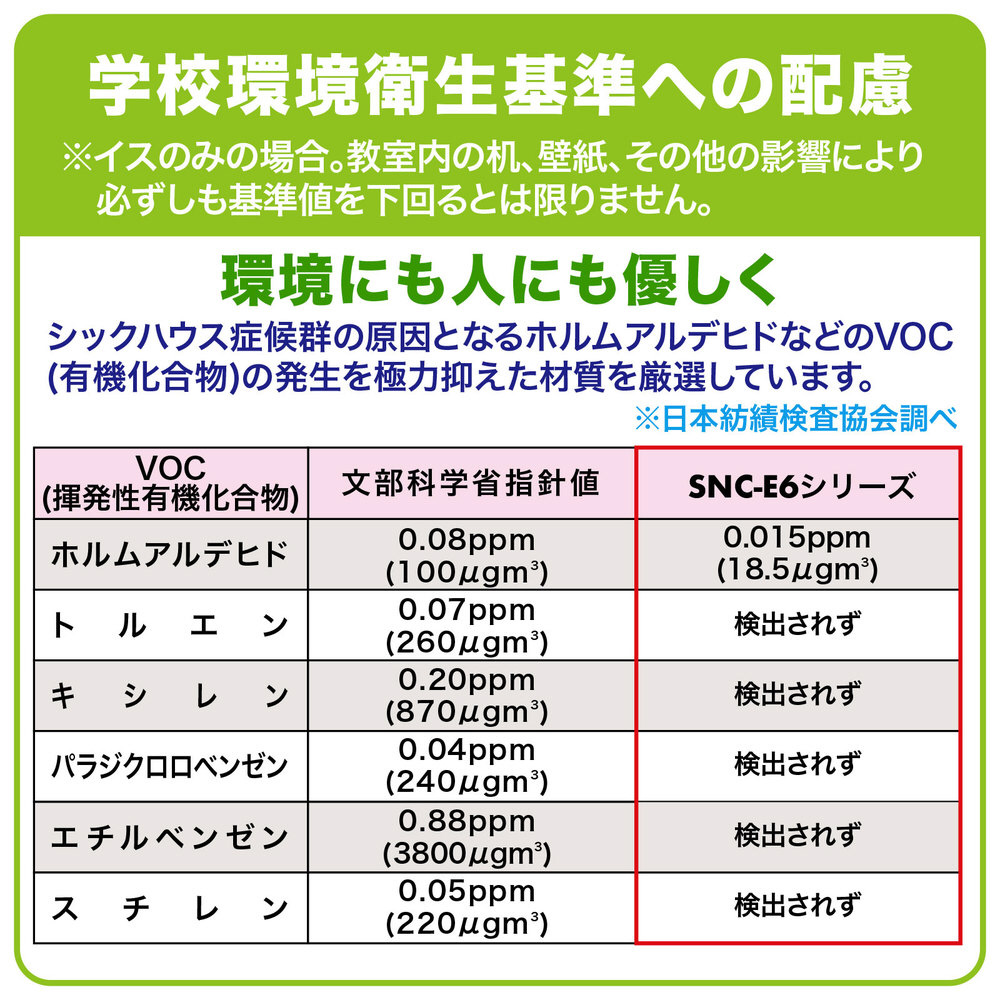 ■学校環境衛生基準に対応。ホルムアルデヒドなどのVOC(揮発性有機化合物)の発生を極力抑えています。