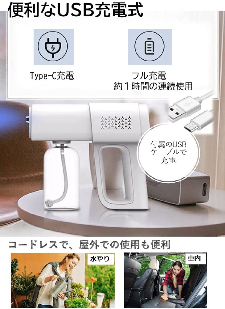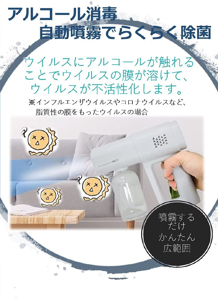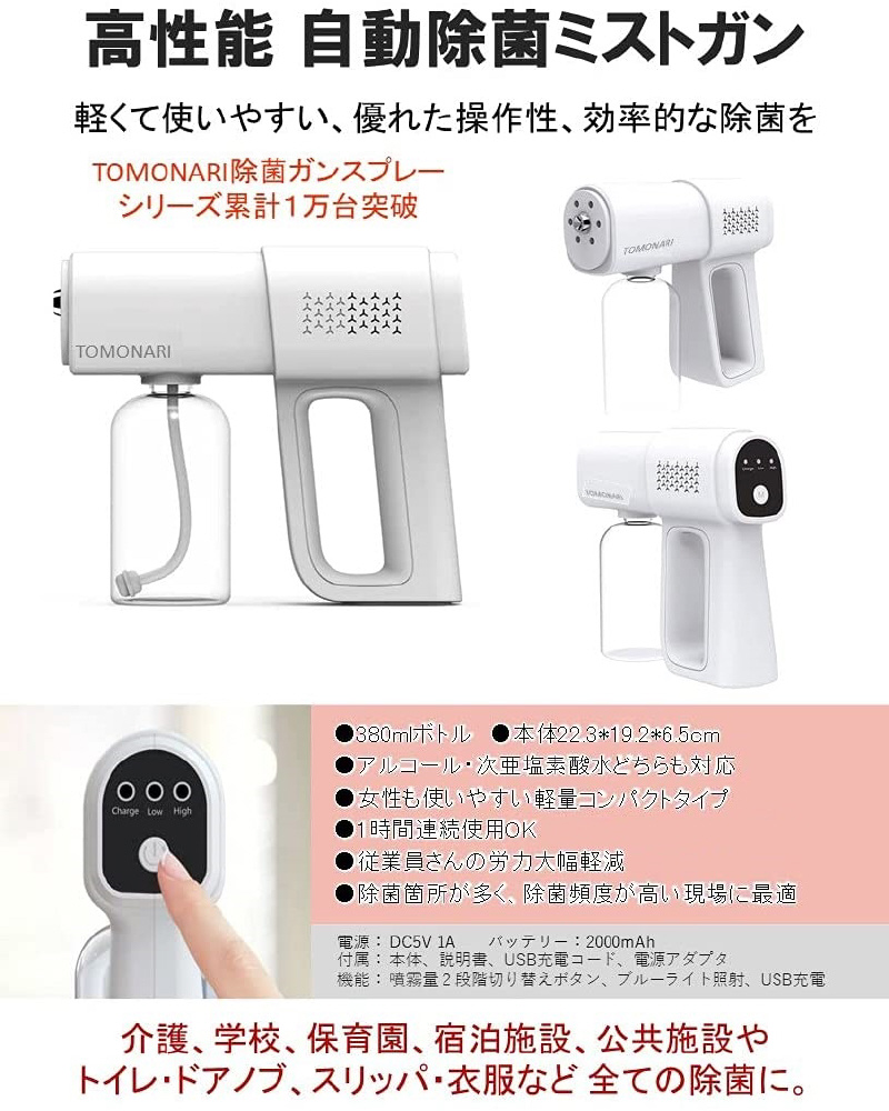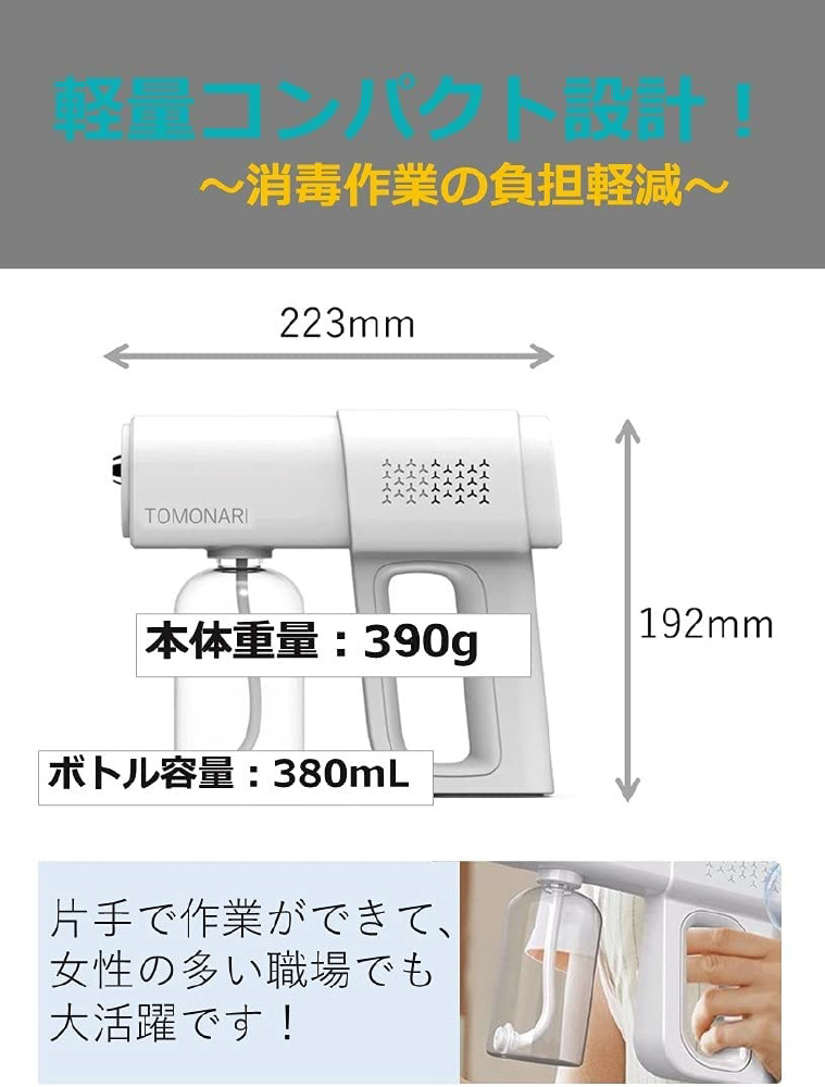 軽くて使いやすい、高性能 自動除菌ミストガン