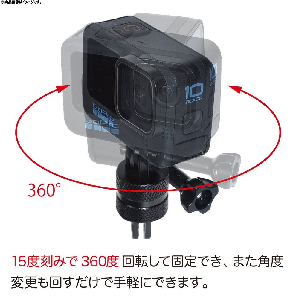 30度刻みで360度回転して固定でき、角度変更も回すだけで手軽にできます。回転マウントが付いていないアクセサリーでも360度回転が可能。