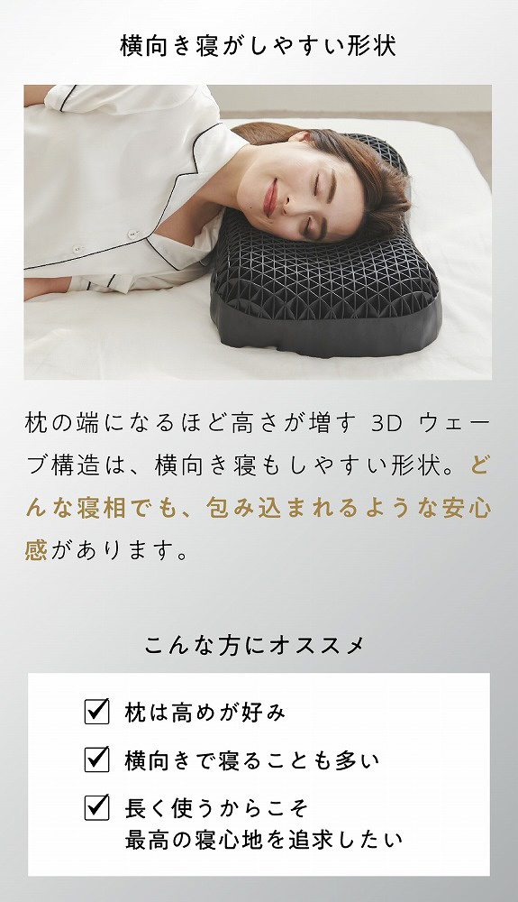 TPE(熱可塑性エラストマー)を枕全体に使用することによって水に浮いて包み込まれるような寝心地を実現