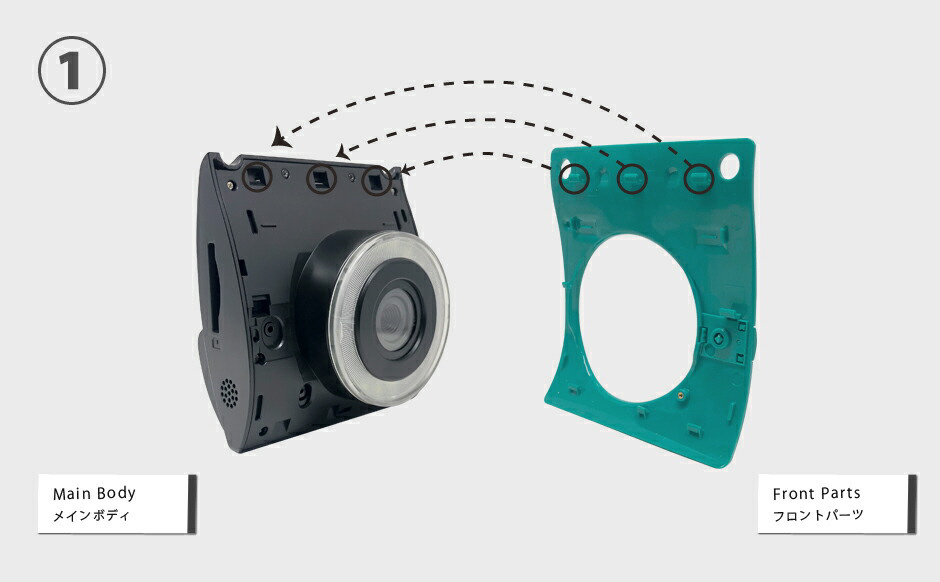 フロントパーツがメインボディに正しく装着されていない状態ではシャッターが正常に反応しません。またカメラが落下する危険性もございます。フロントパーツがメインボディに正しく装着されているかご確認の上ご使用ください。