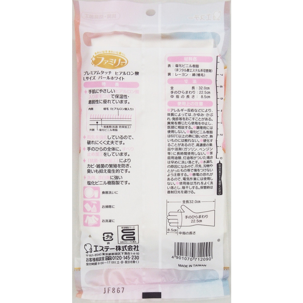 ファミリー プレミアムタッチ ヒアルロン酸配合 Lサイズ パールホワイト 1組 [家庭用手袋 ビニール 手袋] パールホワイト ST71209