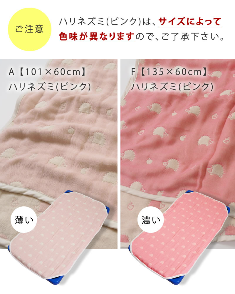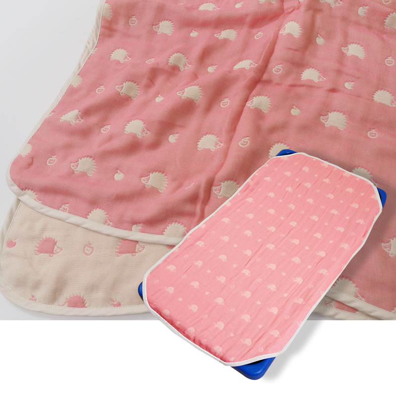 6重ガーゼ使用で洗うたびにふんわり気持ちいいコット用カバーです。ハリネズミは、サイズによって色味が異なります。
