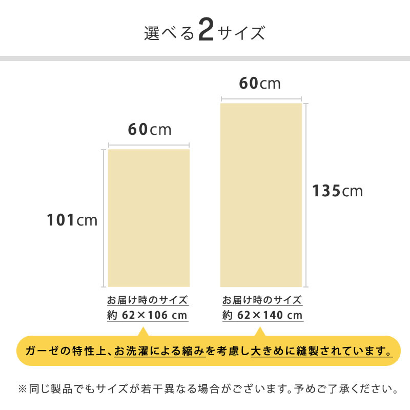 ■ガーゼの特性上、お洗濯による縮みを考慮し大きめに縫製されています。