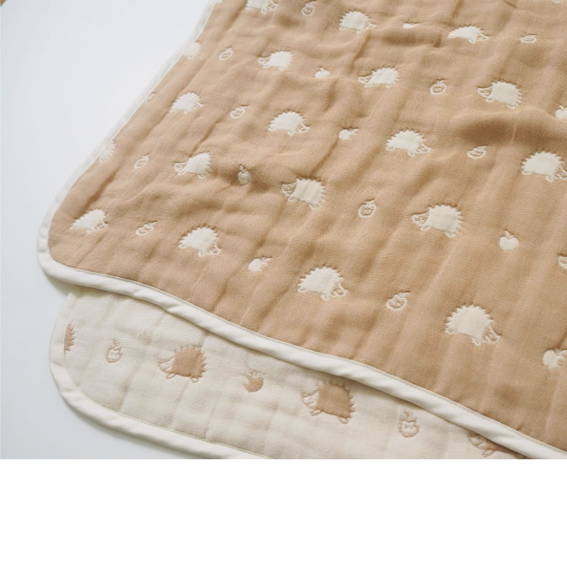 6重ガーゼ使用で洗うたびにふんわり気持ちいいコット用カバーです。ハリネズミは、サイズによって色味が異なります。