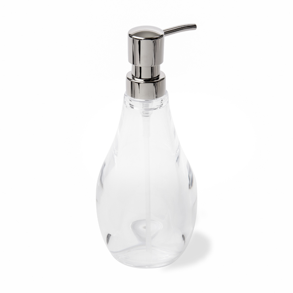 ドロップレット ソープポンプは、シンプルなデザインとクリアで丈夫なアクリル樹脂から作られており、壊れにくく、バスルームやキッチンでの使用に最適です。