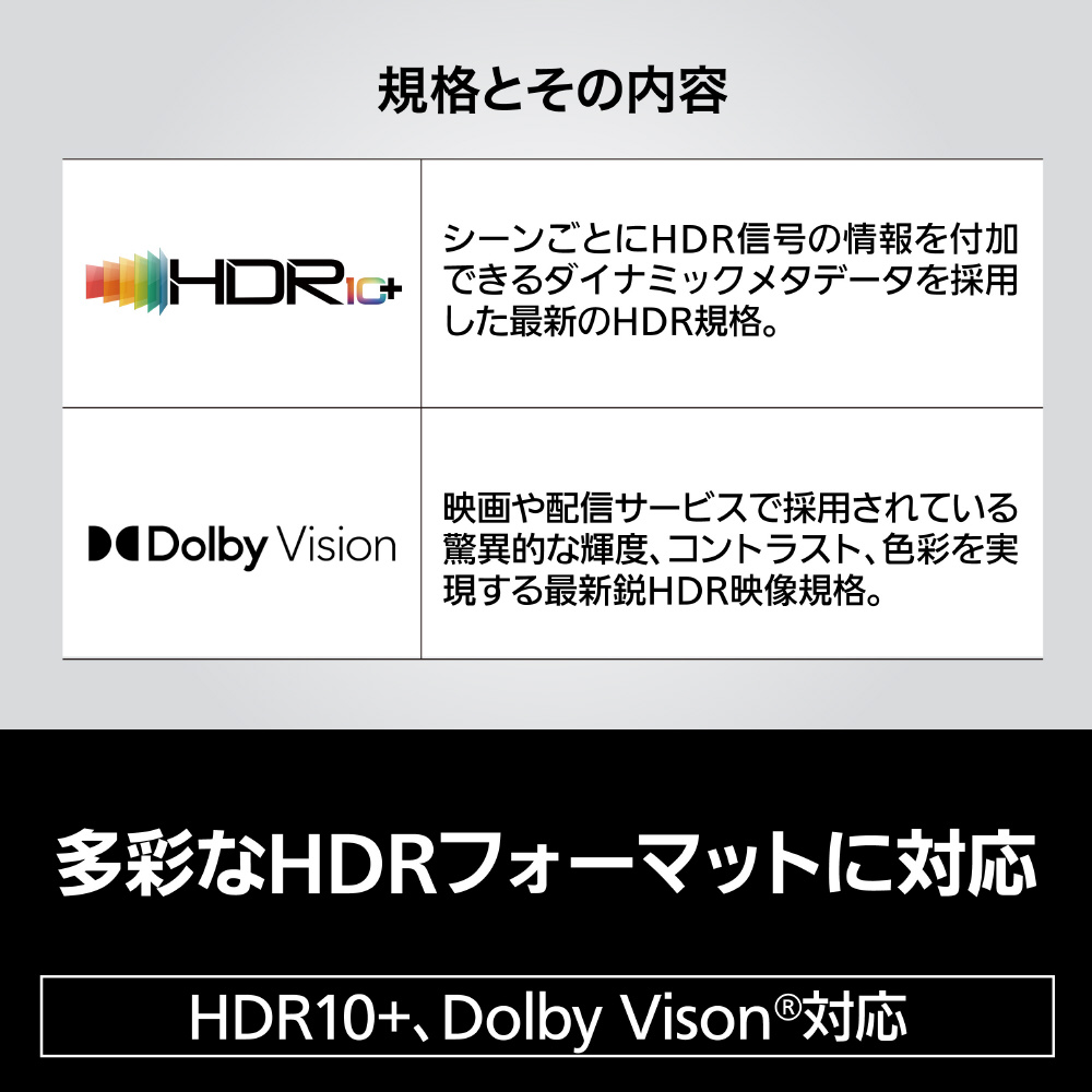 ■Ultra HD ブルーレイ※5・インターネット動画配信サービス※6の多彩なHDRフォーマットに対応(HDR10+/Dolby Vision(ドルビービジョン))