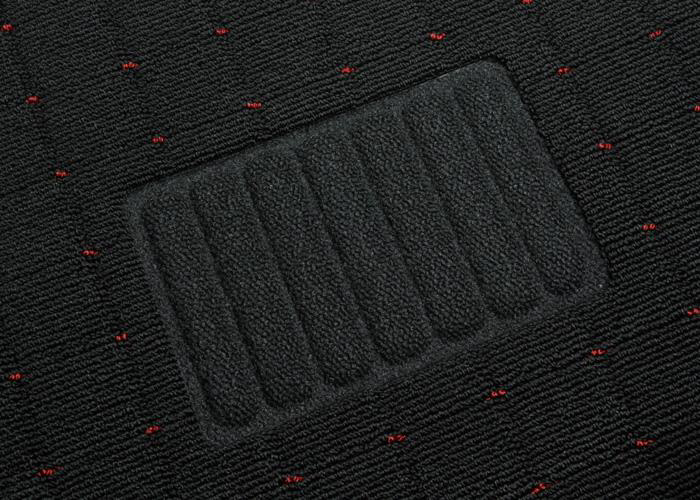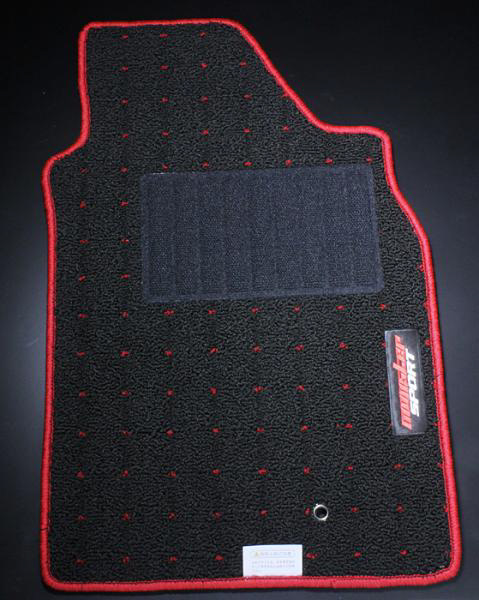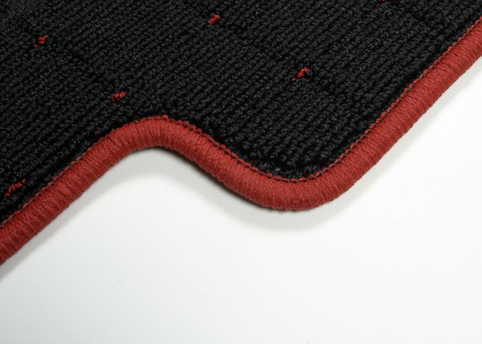 前席用の2枚には刺繍でモンスタースポーツのロゴをあしらい、ブラック×レッドのコントラストがインテリアに華やかさを与えます。機能性も折り紙付き。耐久性に優れた素材とズレ防止構造、ヒールパッドの装備によってスポーツドライビングをしっかりとサポートします。