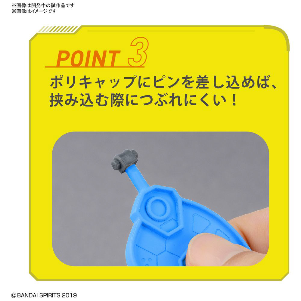 ■ポリキャップにピンを差し込めば、挟み込む際につぶれにくい。
