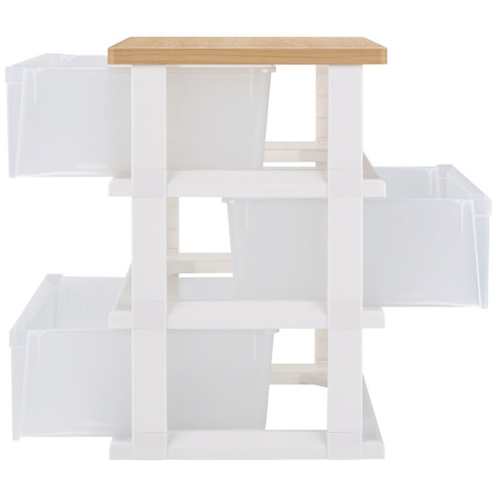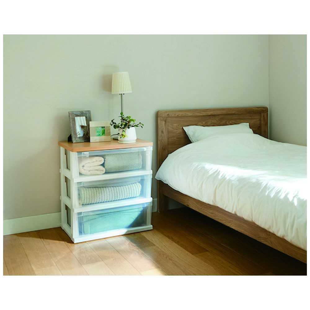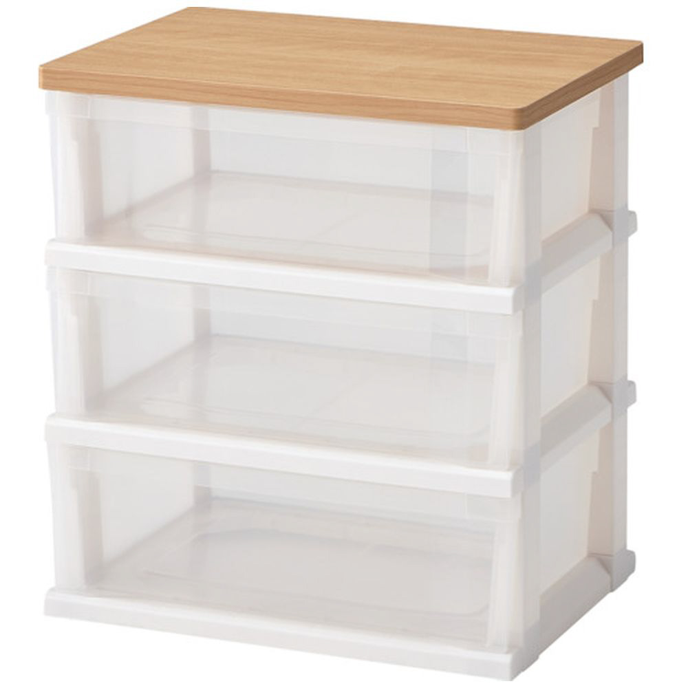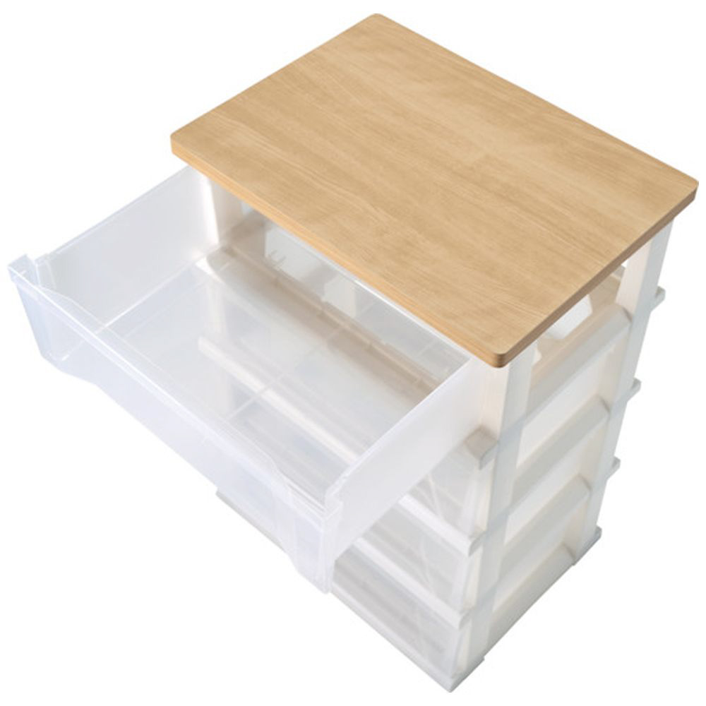 木製天板ストッカー ※組立式3段(約 W55×D40×H60cm) 天馬(TENMA) 【天板】メープル×【引き出し】クリア 110012802