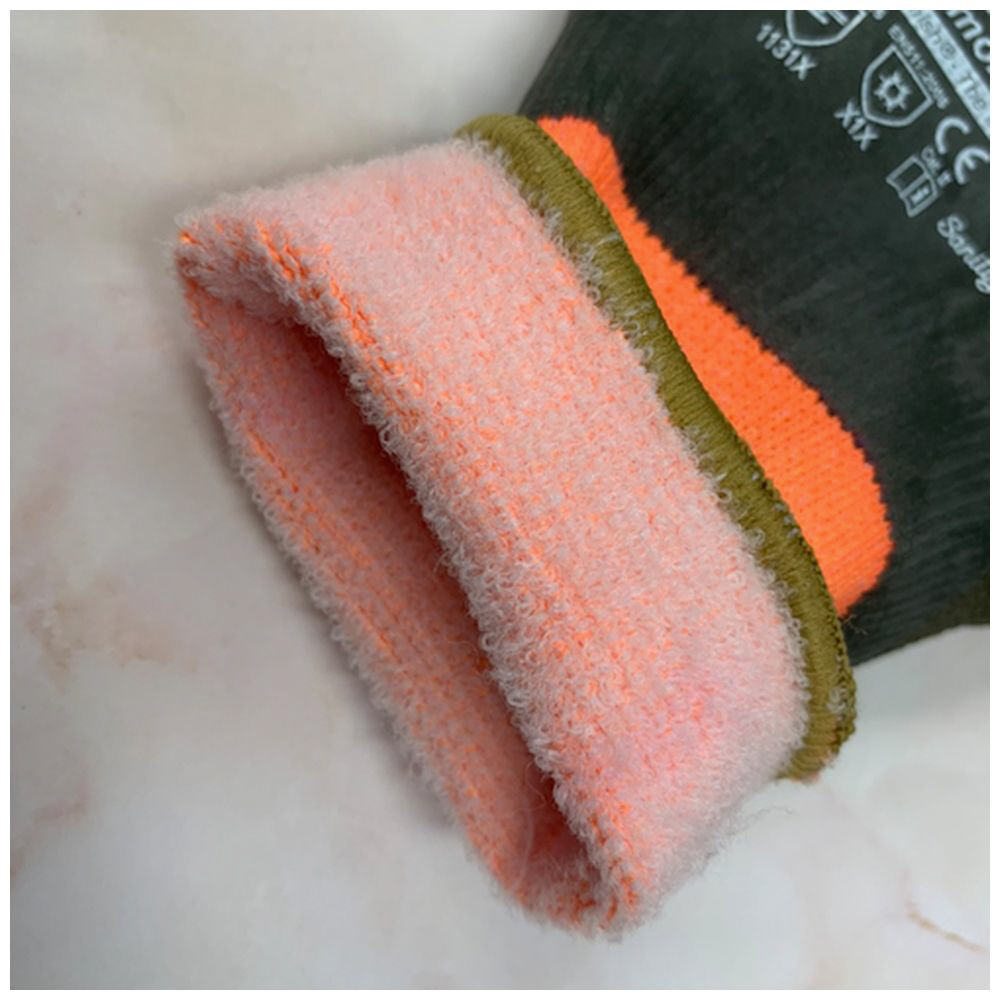 ■裏地をパイル編みし、起毛させた防寒作業用手袋です。