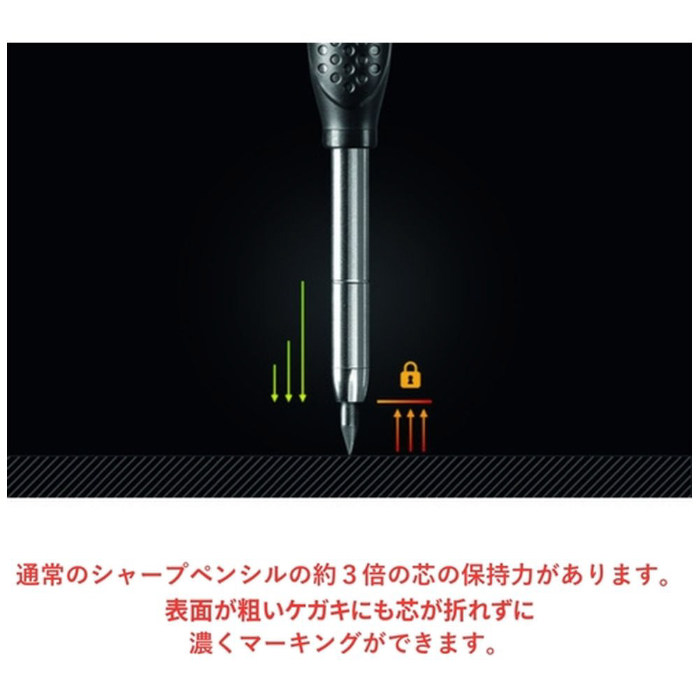 通常のシャープペンシルの約3倍の2kg までの荷重に耐えられる芯の保持力があります。