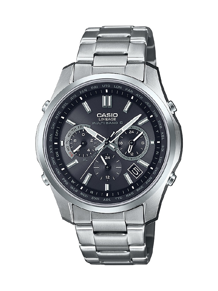 ■フルメタルケースのソーラー電波時計「LINEAGE」のクロノグラフモデルです。