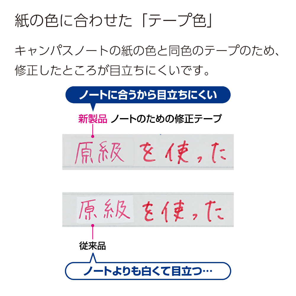 ●キャンパスノートの紙の色と同色のテープのため、修正したところが目立ちません。