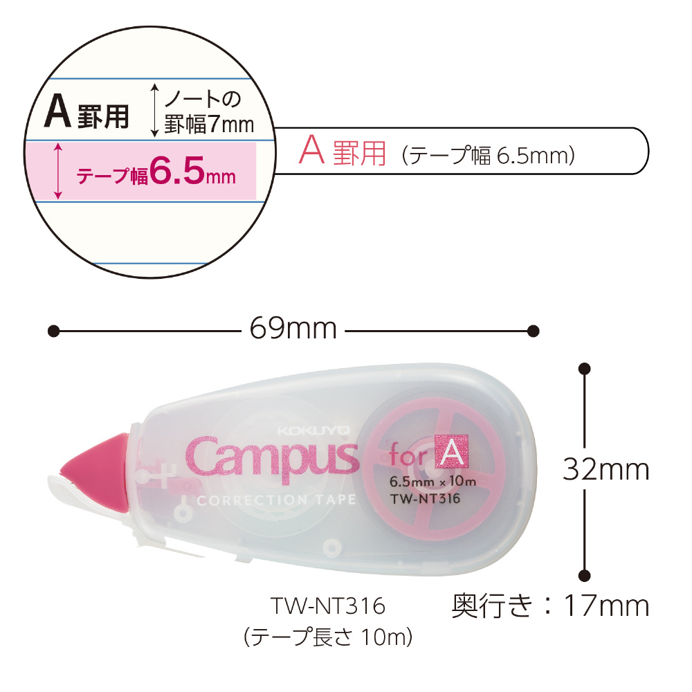 ノートのための修正テープ(使い切りタイプ) A罫用10m Campus(キャンパス) TWNT316