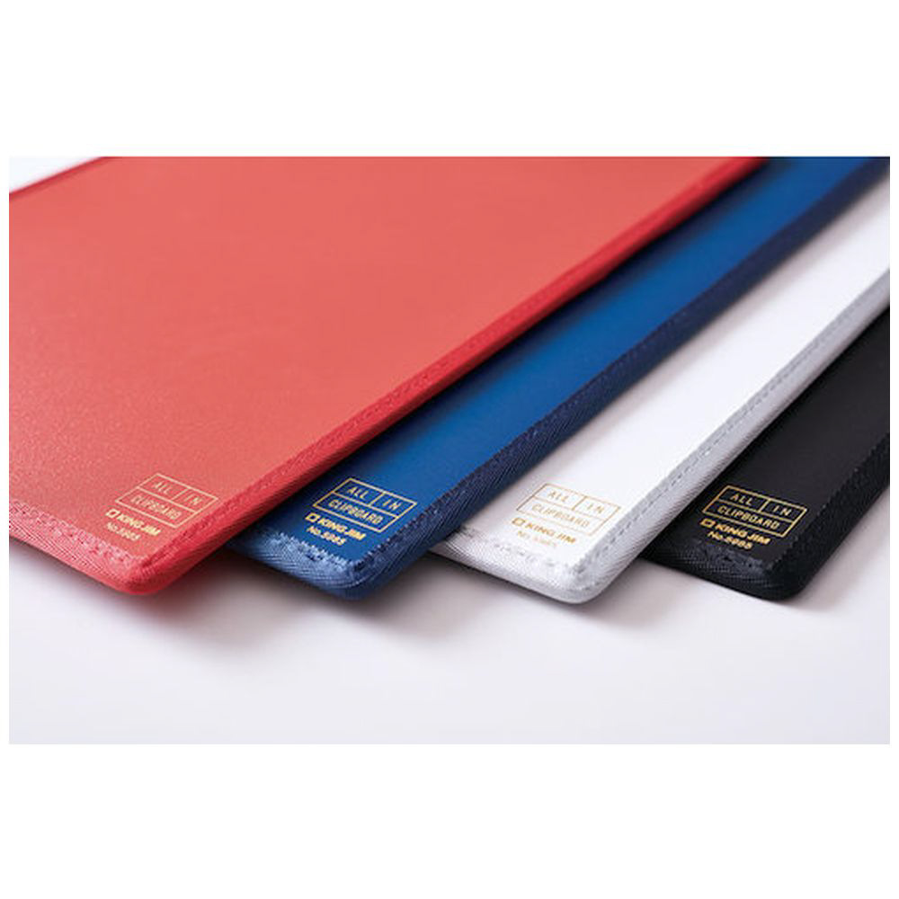 ■「オールイン クリップボード(カバー付き)」は、メッシュポケットやペンホルダーに加え、クリアーホルダーも入る「オープンポケット」(1枚)、A4書類が入る「クリアーポケット」(5枚)、小物を入れられる「チャック付きポケット」(1枚)、名刺が約15枚収納できる「名刺ポケット」(1枚)がつき、収納力が充実。