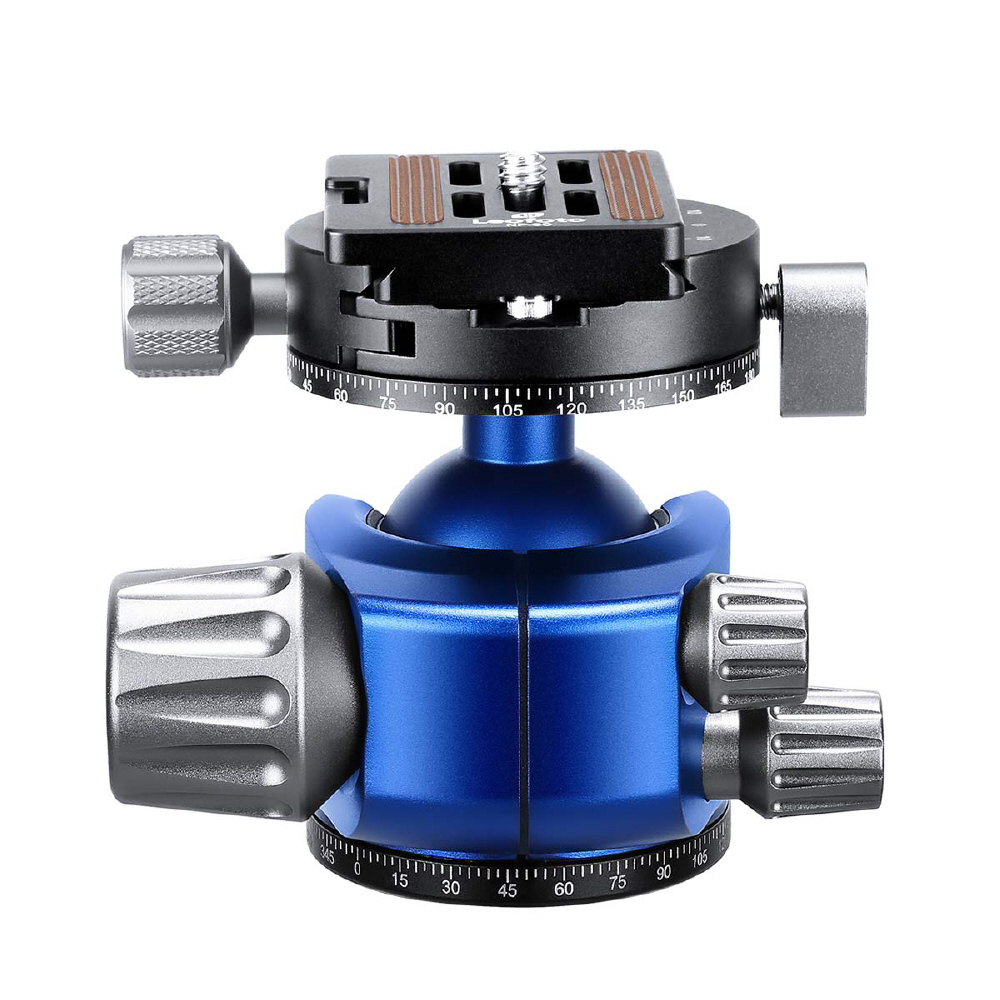 レオフォトを代表する低重心タイプの自由雲台LHシリーズ。直径40mmのボールを採用しておりフルサイズミラーレスカメラにマッチする固定力と小型化を両立したモデルです。見た目はコンパクトながら耐荷重は最大20kgを実現。鮮やかなブルーカラーモデル。
