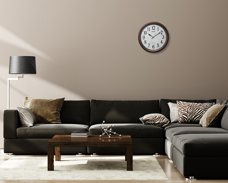 すっきりデザインで見やすい。コチコチ音が気にならない連続秒針の電波掛け時計です。