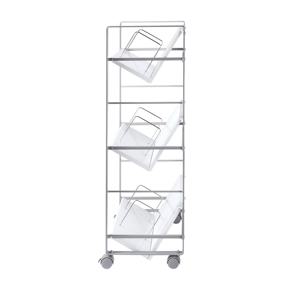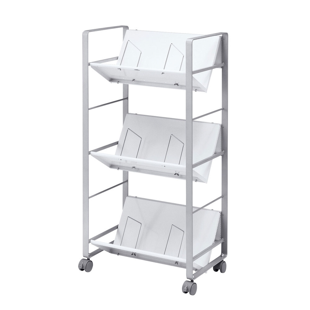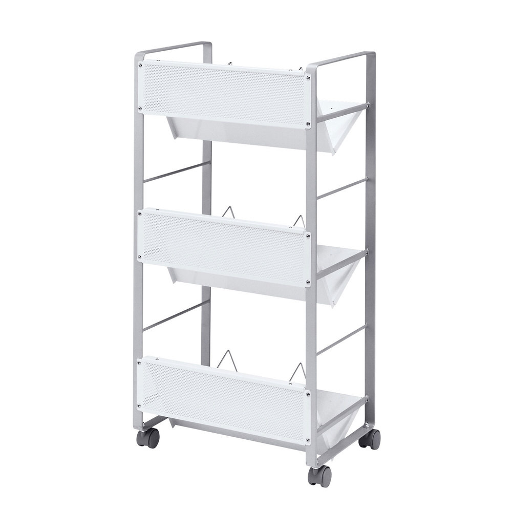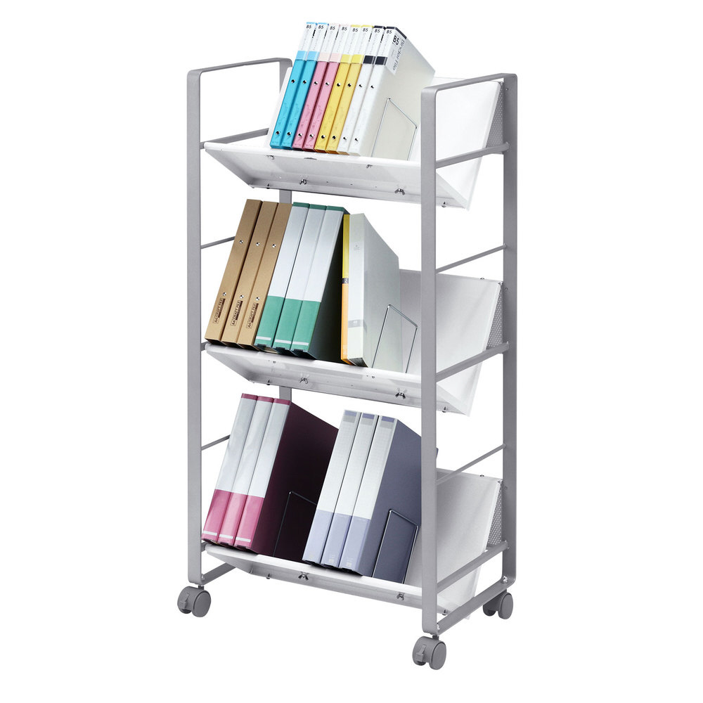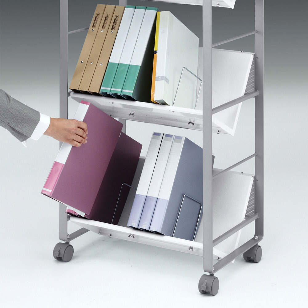 斜め設計の棚板で書類が取出しやすい。デスク周りの書類整理に便利なファイルワゴン。3段タイプ。