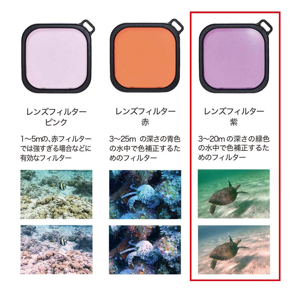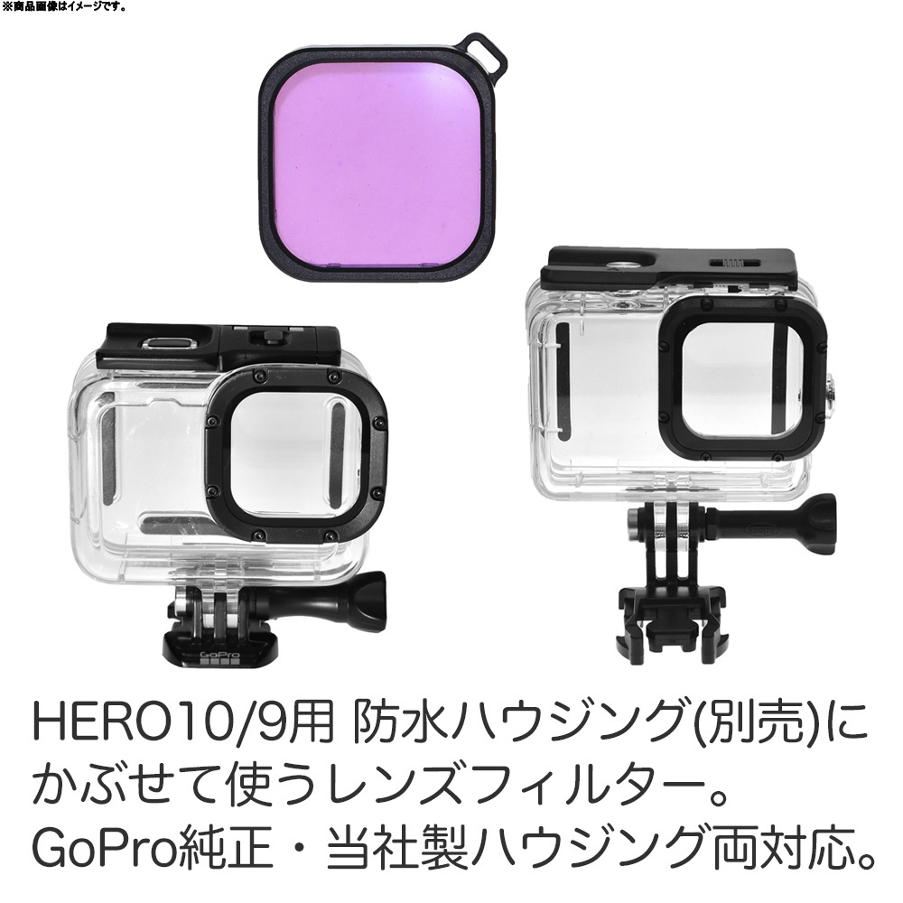 GoPro HERO13/12/11/10/9防水ハウジング(GoPro純正防水ケース対応)専用の色補正用のレンズフィルター(紫)です。