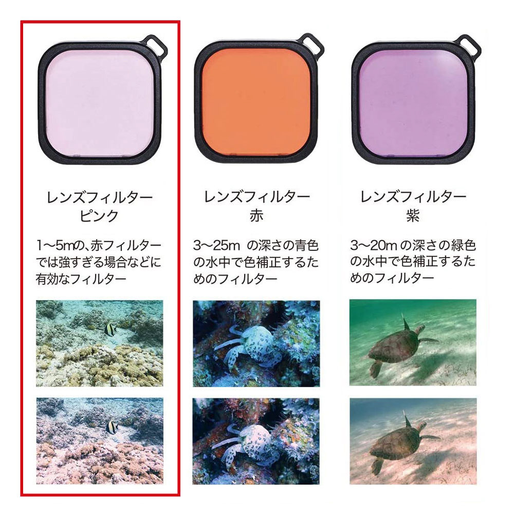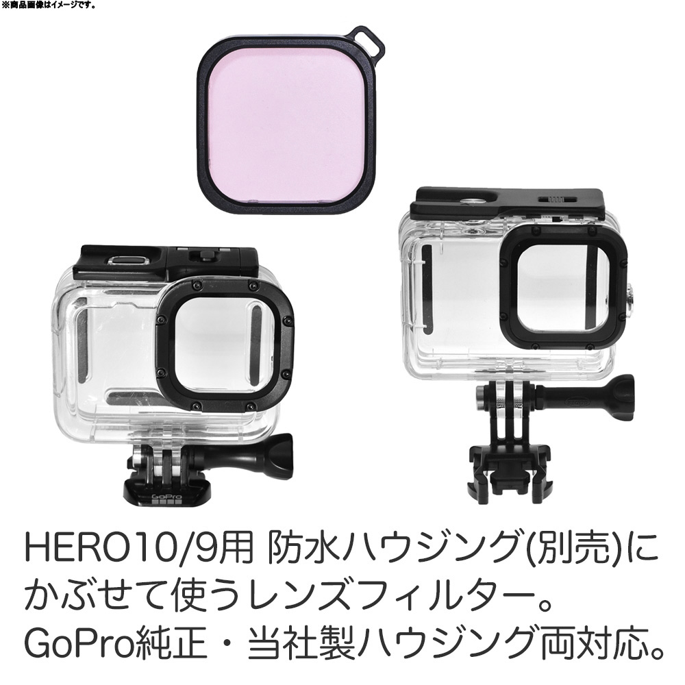 GoPro HERO13/12/11/10/9防水ハウジング(GoPro純正防水ケース対応)専用の色補正用のレンズフィルター(ピンク)です。