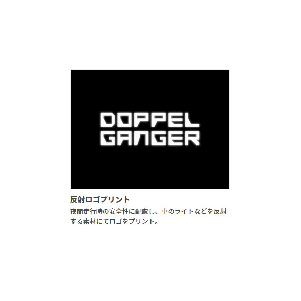 夜間走行時の安全性に配慮し、車のライトなどを反射する素材にてロゴをプリント。