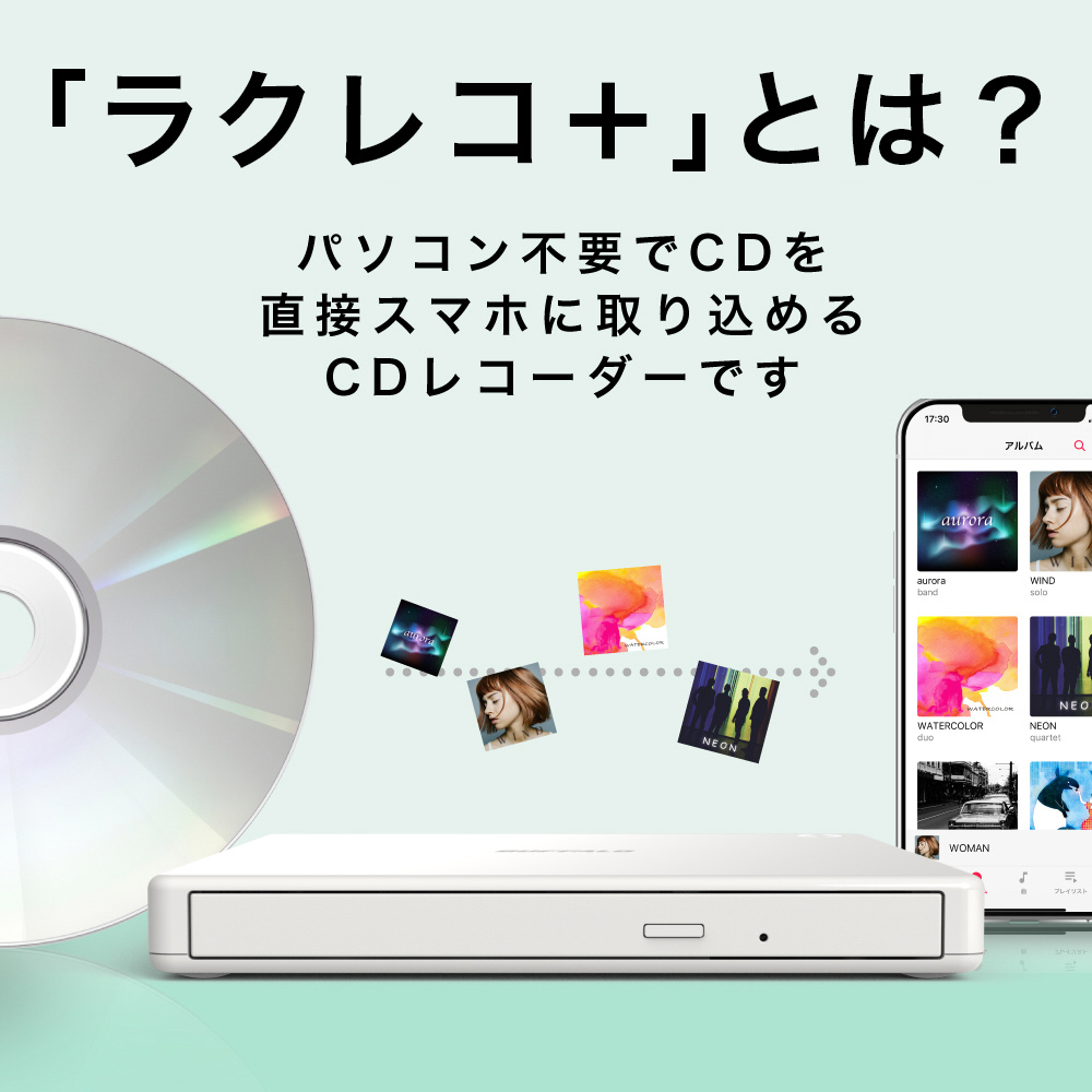 本ケーブルでラクレコ+とモバイルバッテリーなどを接続すれば、コンセントがなくてもCDの取り込みが可能に。外出先でもACアダプターを持ち運ぶことなく、CDの取り込みができます。