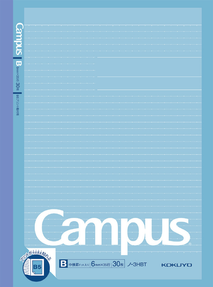 ノート(プリント貼付用) Campus(キャンパス) 3HBT [セミB5・B5 /6mm(B罫) /ドット入り罫線]