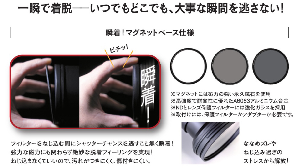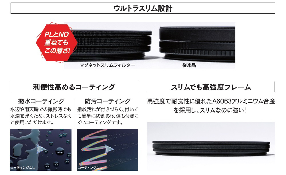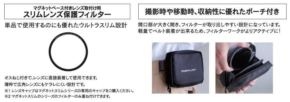 ・通常のフィルターは重ね付けできません。重ね付けする際は、マルミマグネットスリムシリーズのフィルターをお使い下さい。