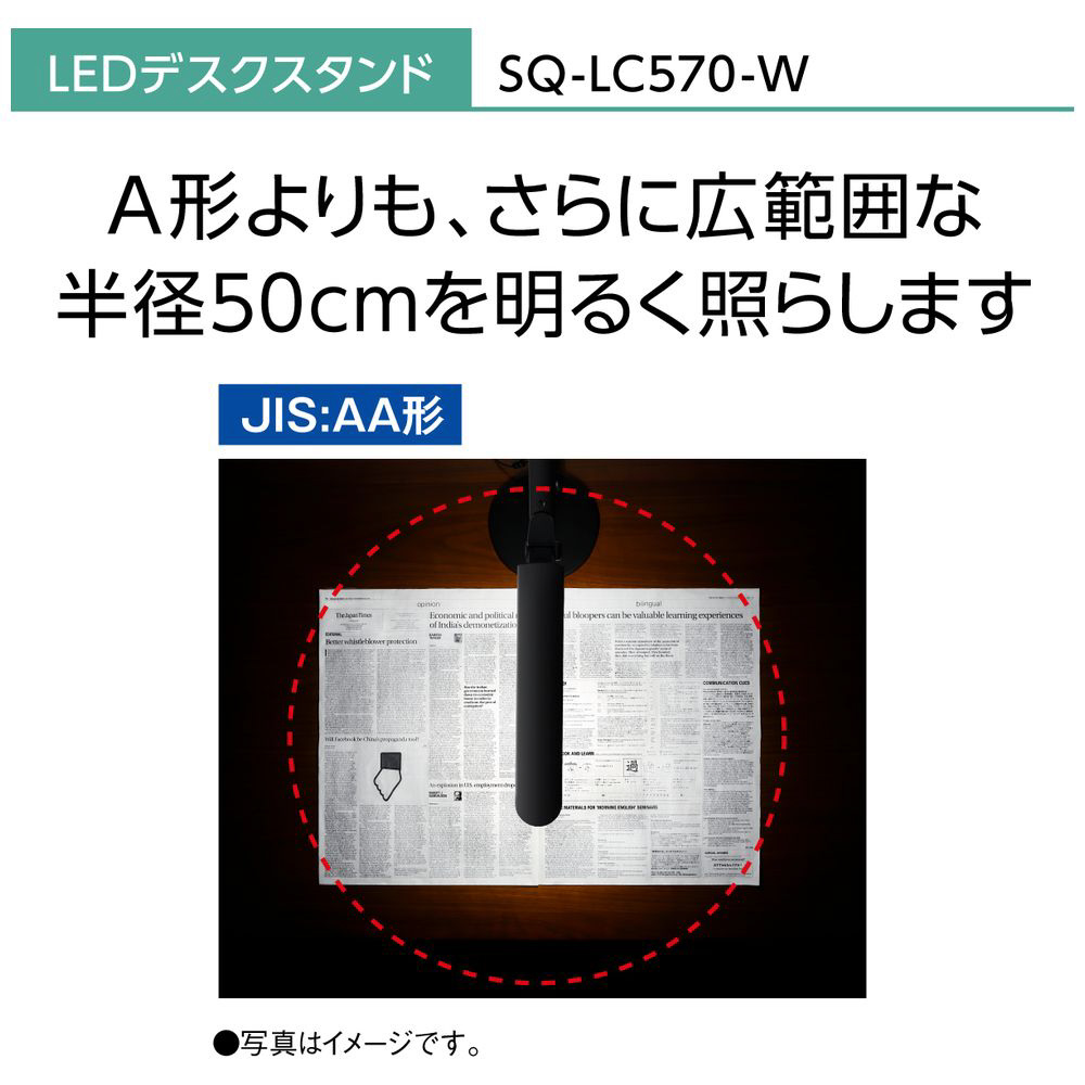 JIS:AA形相当の明るさで新聞見開きサイズを明るく照らす