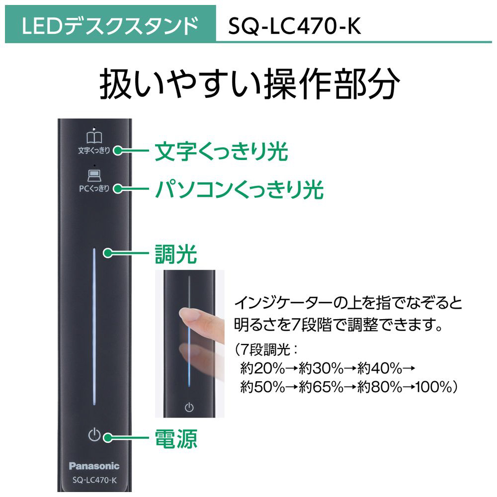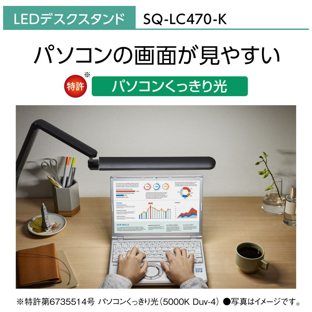 商品特長.1 パソコンの画面が見やすい「パソコンくっきり光」搭載 商品特長.2 紙面の文字が読みやすい「文字くっきり光」搭載 商品特長.3 JIS:A形相当の明るさで新聞見開きサイズを明るく照らす 商品特長.4 6か所可動で使いやすい