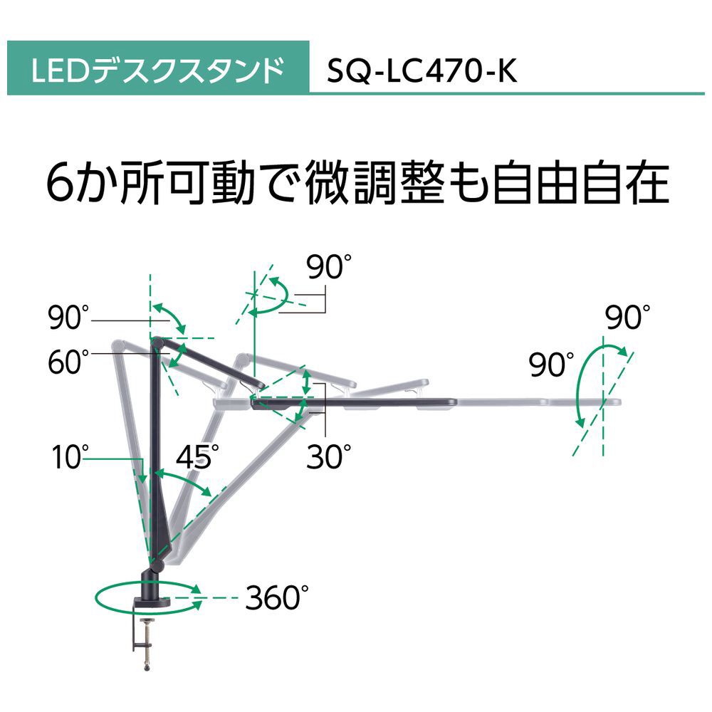 LEDデスクスタンド クランプタイプ ブラック仕上 SQ-LC470-K [LED /昼白色]
