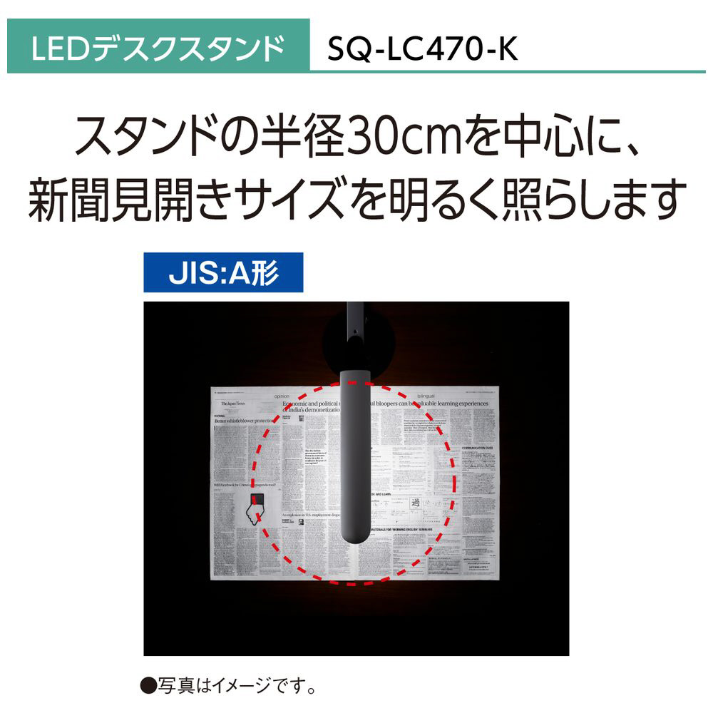 JIS:A形相当の明るさで新聞見開きサイズを明るく照らす