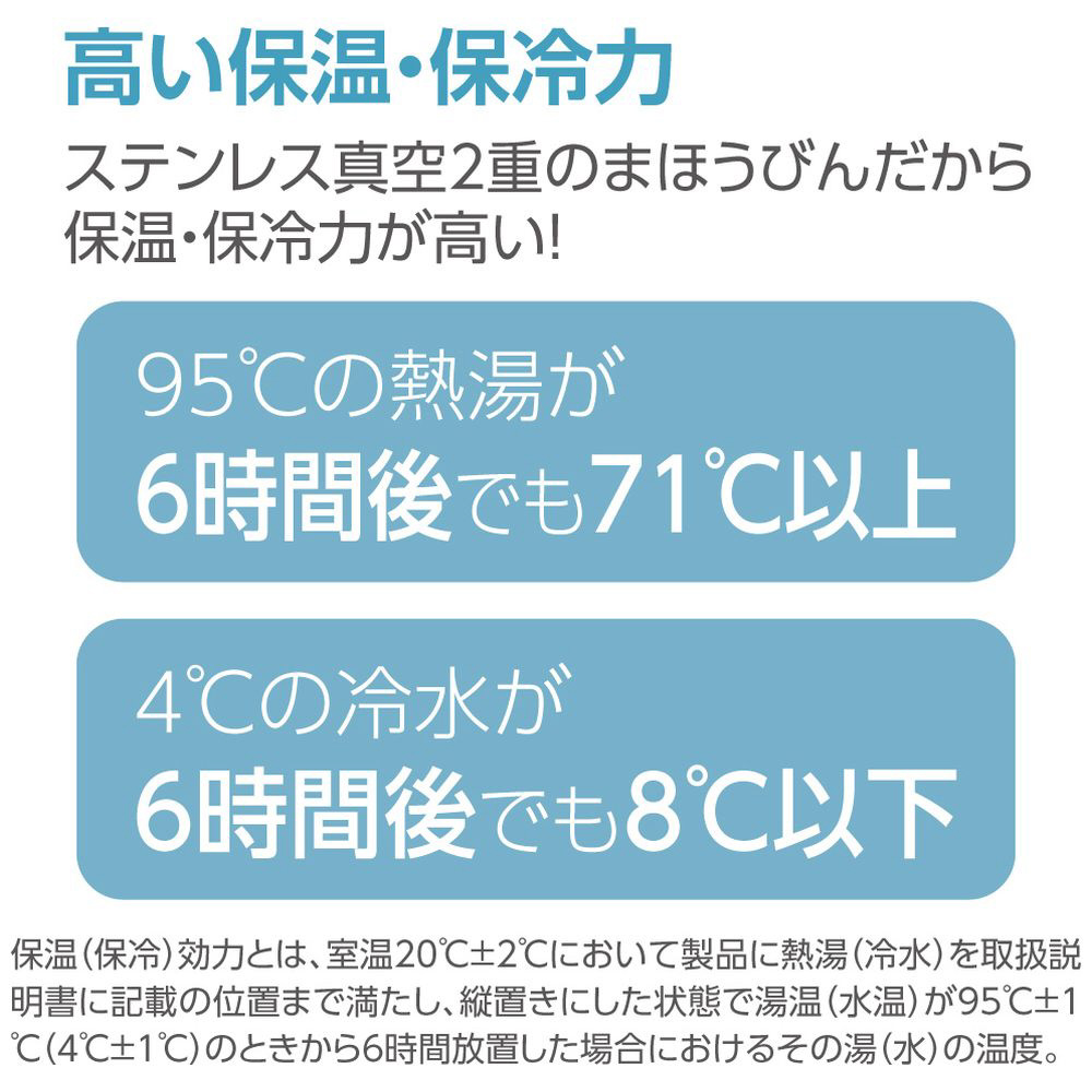 ・ステンレス真空2重のまほうびんだから保温・保冷力が高い!
