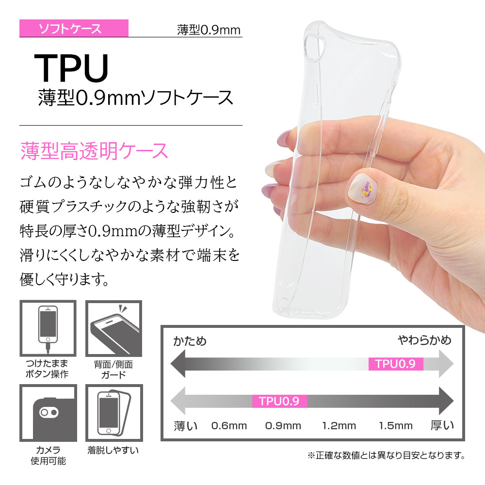 「滑りにくい+衝撃吸収」滑りにくく、しなやかなTPU素材で優しく端末を守ります。(※当社ハードケースと比較した場合)